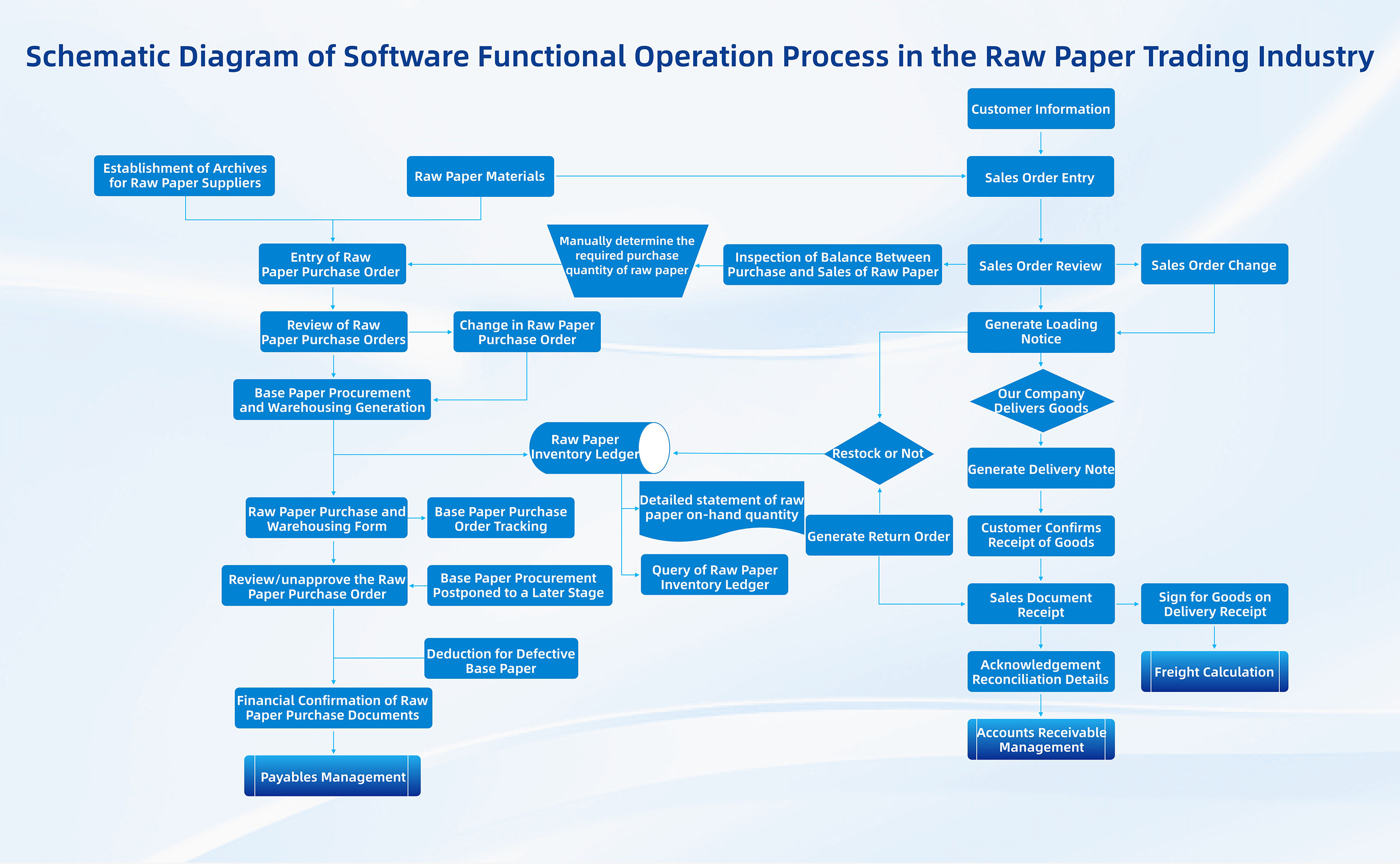 • Sales Delivery Distinguish between two shipping modes: one is delivering goods based on the base paper inventory of the company-owned warehouse, and the other is the supplier delivering goods directly to customers