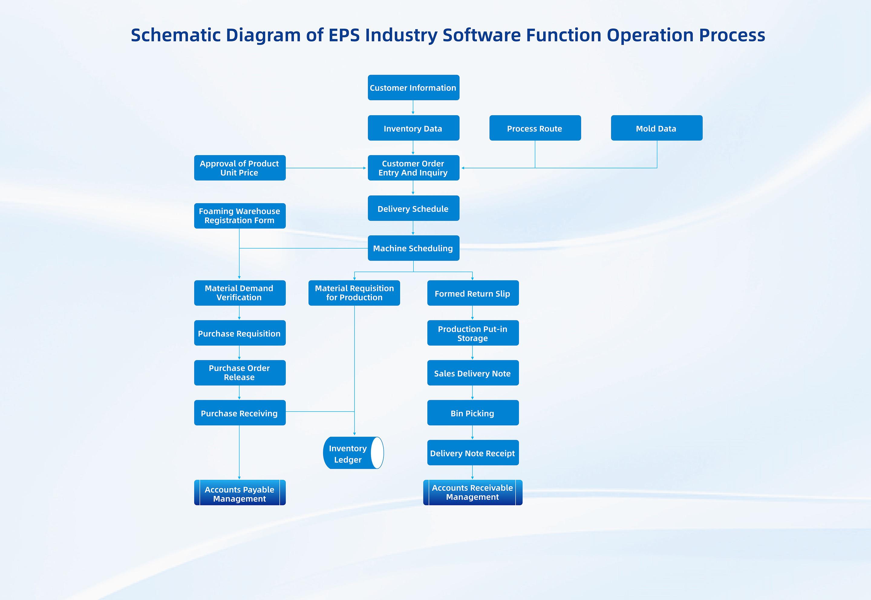 • Material Requirement Verification Combined with the production plans of molding machine stations, the remaining inventory of the foaming warehouse, the safety stock level of EPS pellet materials and the outstanding purchase quantity, the system calculates the material shortage status and generates purchase requisition documents
