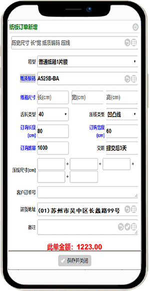 功能描述:支持微信移动端下单、Excel导入、OCR图片识别,帮助纸板厂提升纸板录单效率、减少因人为因素造成的错误。