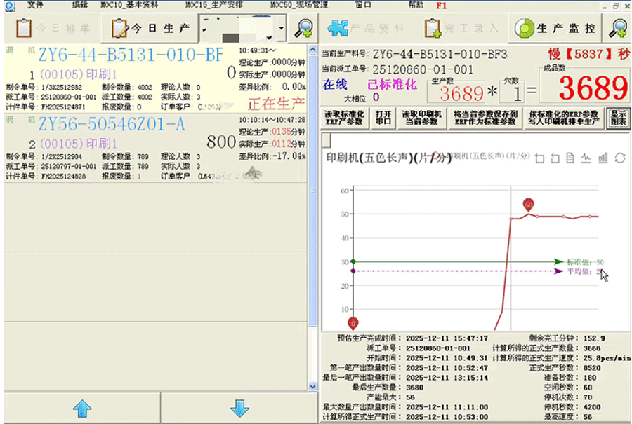 实时展示印刷机台生产任务,自动采集印刷机完工数量。