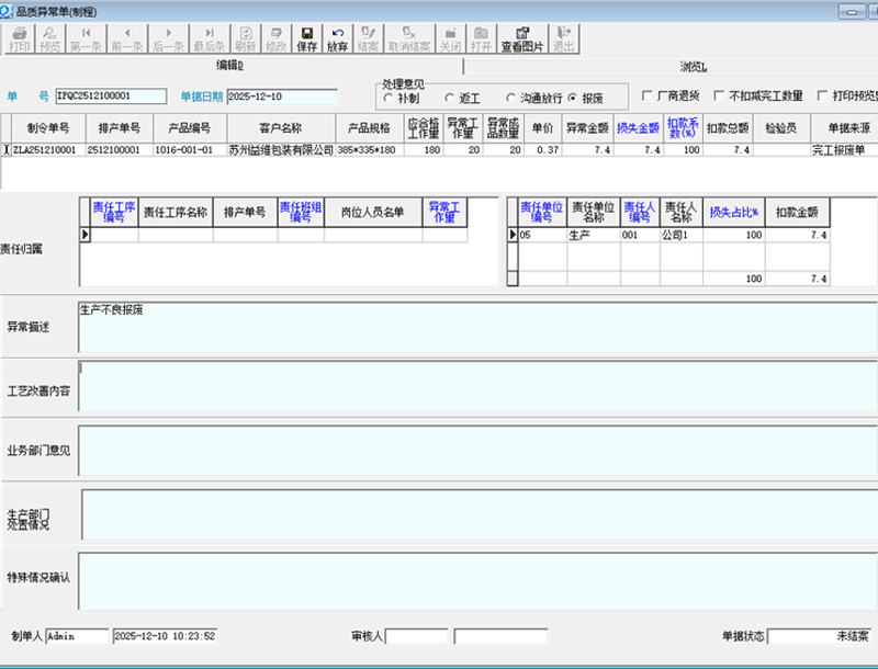 检验并登记纸箱生产过程中发现的问题,明确责任归属,助力后续针对性改善,持续提升生产品质。
