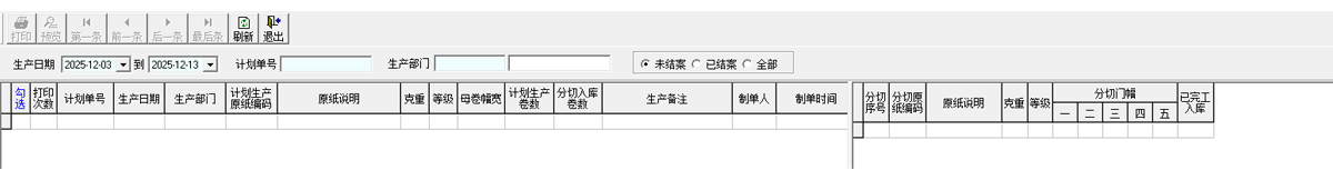 用于原纸母卷及小卷分切生产计划的录入及查询。